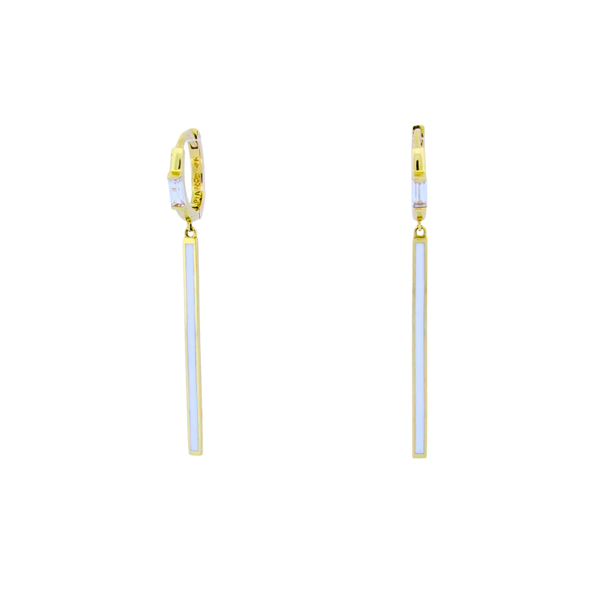 Objavte krásu čistých línií s náušnicami ARIA z kolekcie CREYO. Tieto moderné visiace náušnice z 14-karátového žltého zlata (585/1000) vynikajú minimalistickým dizajnom s jemným bielym detailom, ktorý dodáva šperku ľahkosť a elegantný kontrast.