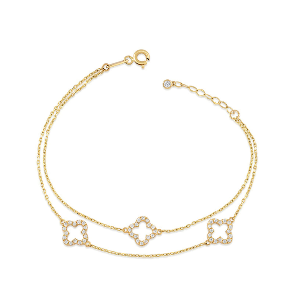 FLORÉ | Dvojitý zlatý náramok so štvorlístkami zo zirkónov