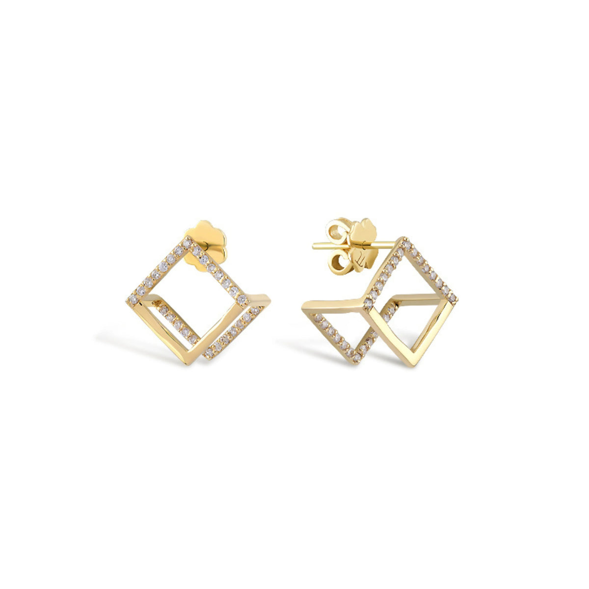 Vyjadrite svoju osobnosť s modernými náušnicami z kolekcie CREYO GEOMETRIC. Tieto luxusné náušnice zo 14-karátového zlata (585/1000) upútajú pozornosť výrazným dizajnom dvoch prepojených štvorcov, zdobených drobnými zirkónmi. Ich trojrozmerný efekt pôsobí štýlovo a architektonicky, čo z nich robí ideálny doplnok pre ženy, ktoré milujú nadčasový dizajn s moderným twistom.
