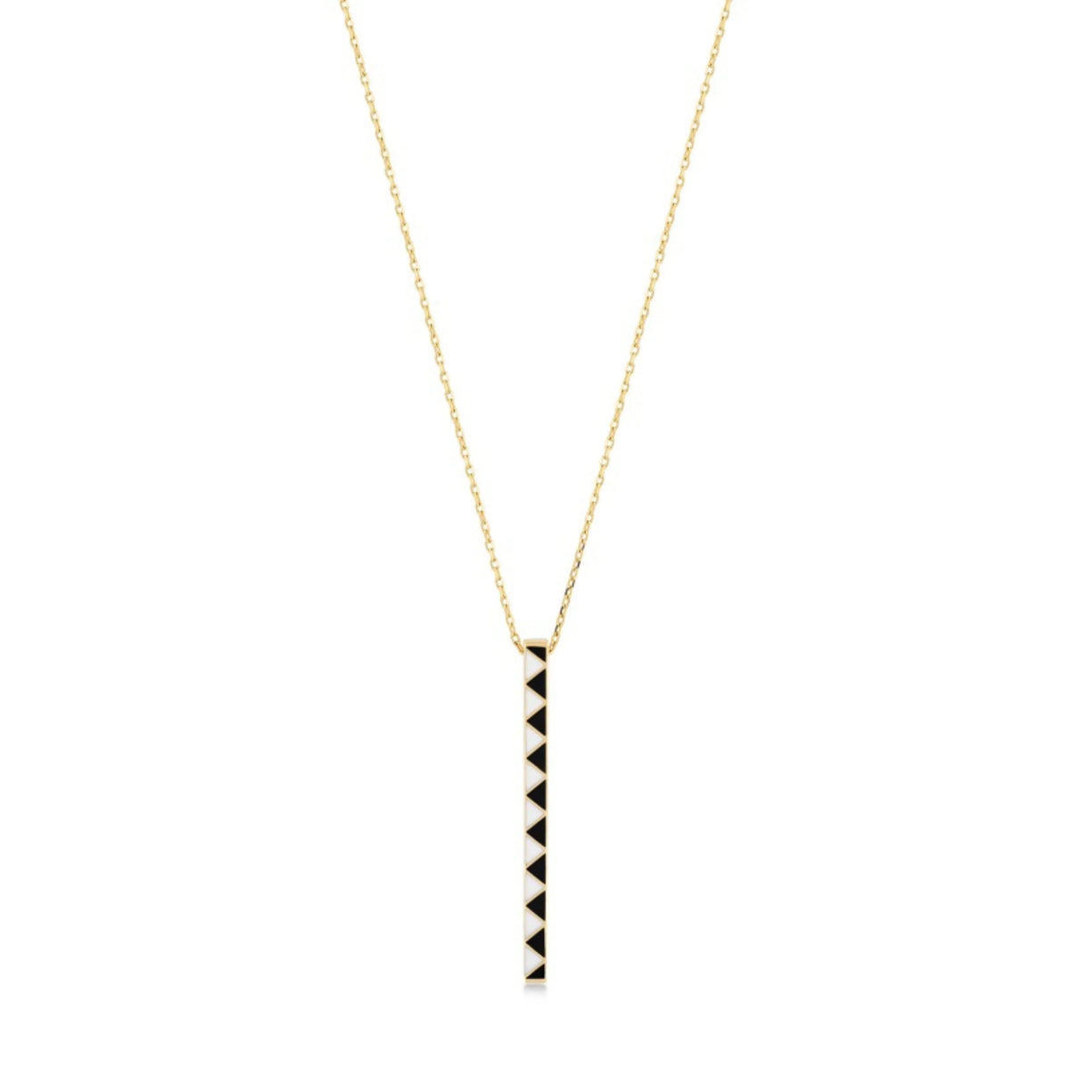 NOIR | Zlatý náhrdelník s čierno-bielym trojuholníkovým vzorom