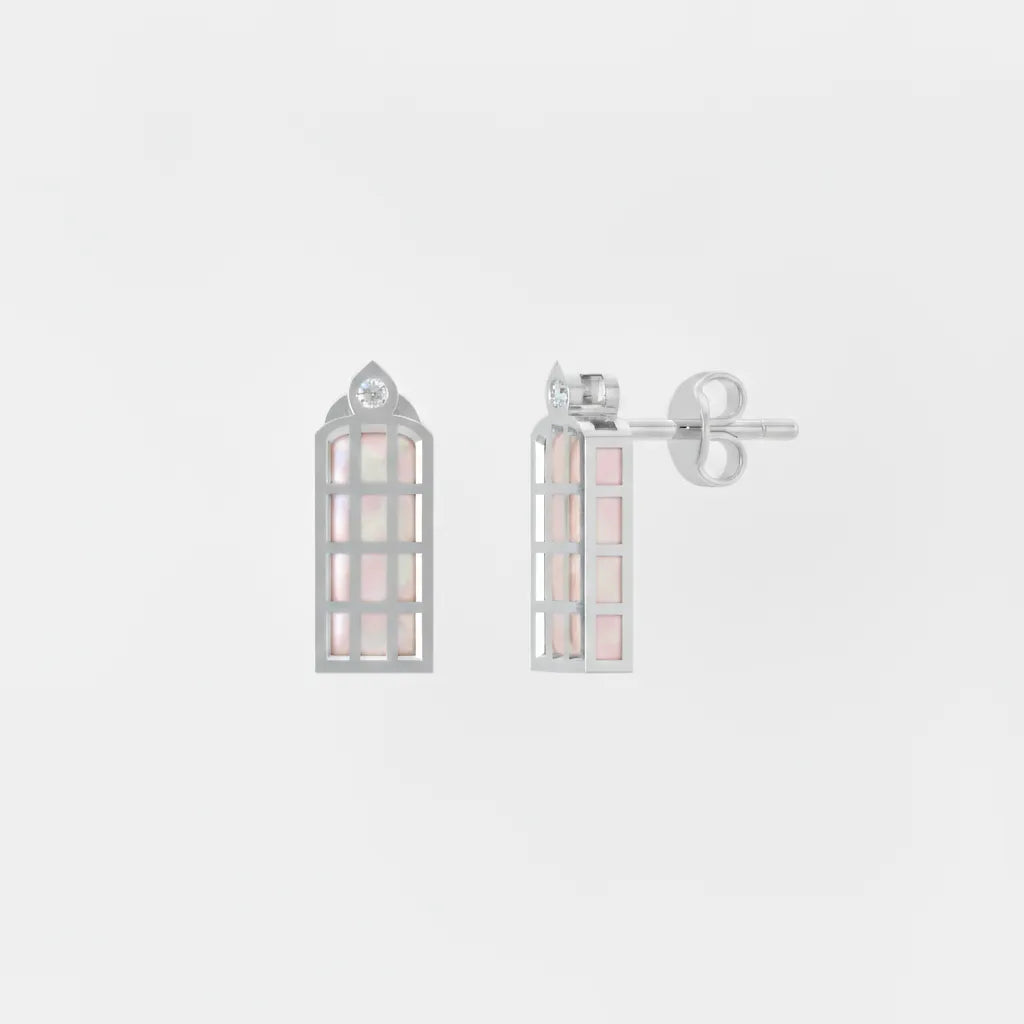 Tieto napichovacie náušnice z 14-karátového bieleho zlata (585/1000) sú navrhnuté v tvare gotického okna – symbolu svetla, viery a harmónie.