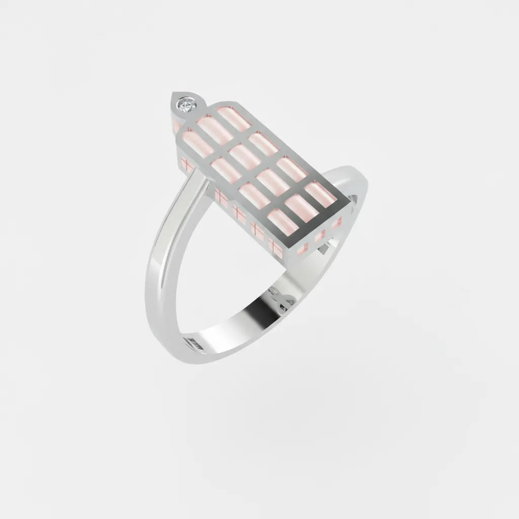 Tento prsteň z 14-karátového bieleho zlata (585/1000) je navrhnutý v duchu architektonickej rovnováhy – inšpirovaný gotickým oknom, ktoré prepúšťa svetlo a premieňa ho na hrejivý odlesk viery a elegancie.