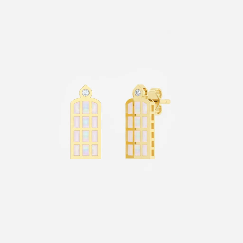 Tieto napichovacie náušnice zo 14-karátového žltého zlata (585/1000) zaujmú svojím jedinečným dizajnom inšpirovaným gotickými oknami chrámov – oknami, ktorými preniká svetlo ako symbol nádeje a krásy.