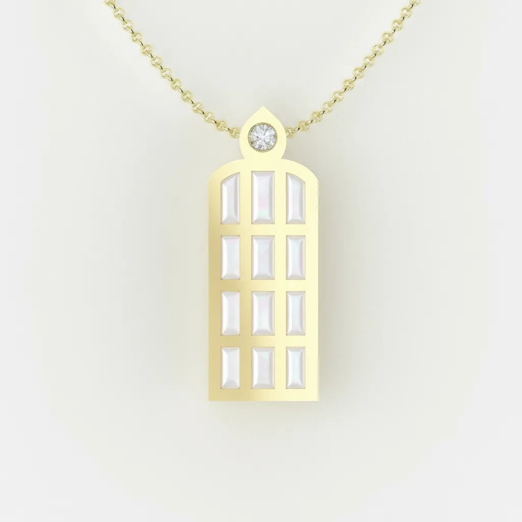 Dizajn prívesku je inšpirovaný tvarom gotického okna – symbolom viery, vnútorného pokoja a rovnováhy.